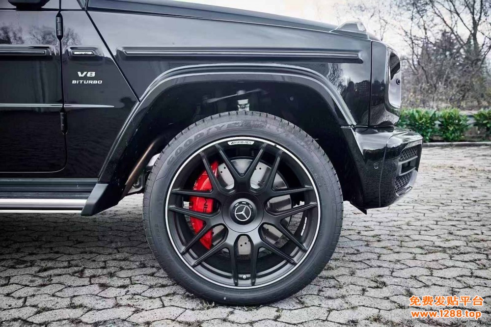 饱满的多活塞卡钳填充轮毂空间,AMG 标识与亮色涂装形成强烈视觉冲击,让 G500 气场直逼百万级 G63 车型。