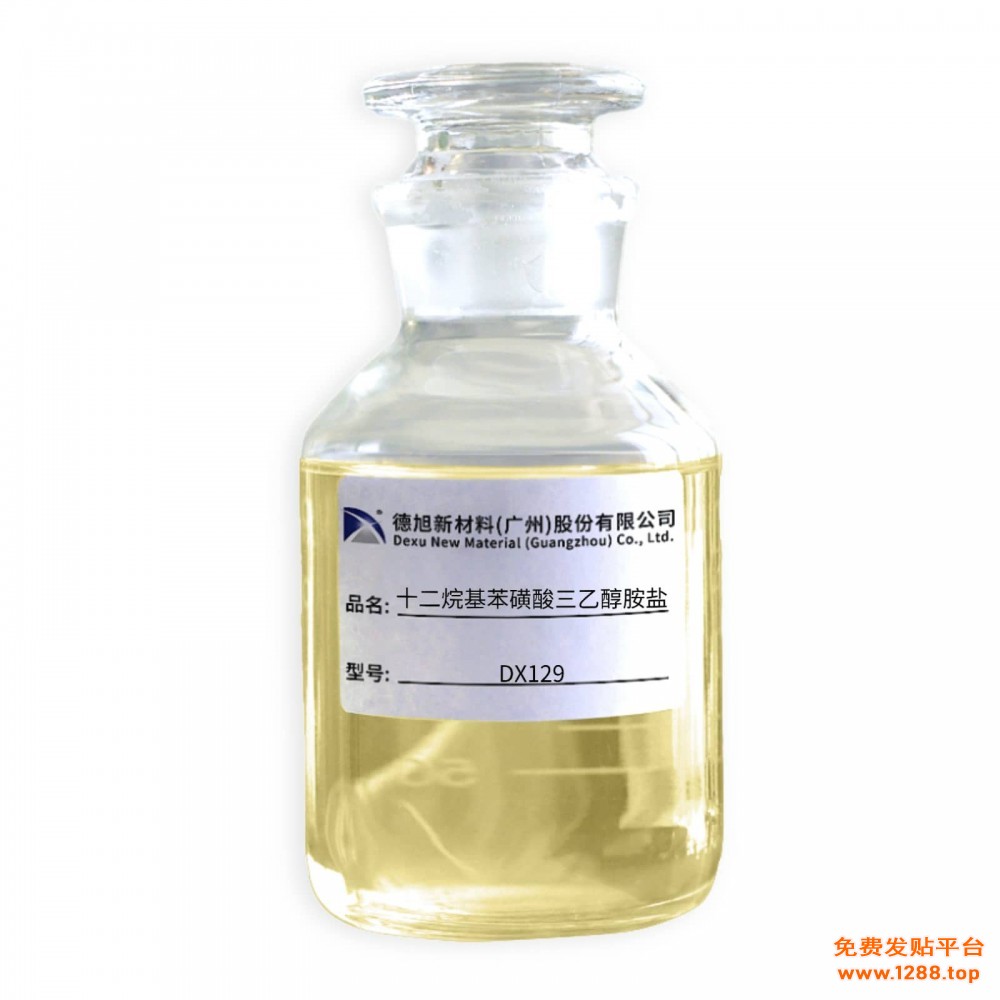 十二烷基苯磺酸三乙醇胺盐DX129为一款温和型表面活性剂,应用于清洗剂体系,具有很好的除灰、除油、铝材缓蚀作用,是除油除灰清洗剂的重要组分。